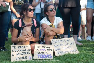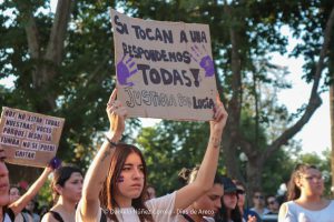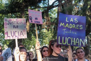Durante toda la protesta, gran cantidad de personas de todas las edades, desde niños y niñas acompañados de sus familias, jóvenes y mayores llevaron carteles con consignas como «vivas nos queremos», «ni una menos» y «todxs somos Lucia», entre otras.