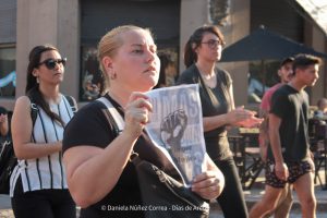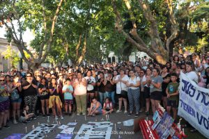Desde alrededor de las 17 hs, el banco rojo de la Plaza Arellano que recuerda a las víctimas de la violencia machista y que fue inaugurado tras el femicidio de María Ramón en 2021, fue el punto de encuentro y allí el micrófono estuvo abierto para quienes quisieran expresarse.