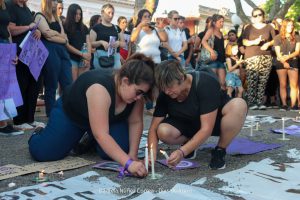 El encuentro cerró con el encendido de velas frente al banco rojo y la firma de un petitorio a entregar al Concejo Deliberante.