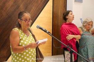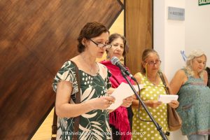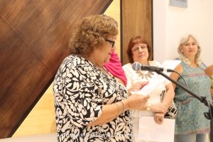 Antes de cortar la cinta y dejar formalmente inaugurada la muestra, cada artista participante leyó un fragmento literario vinculado a lo textil de distintos autores especialmente seleccionados para la fecha.