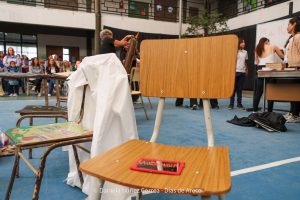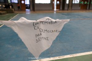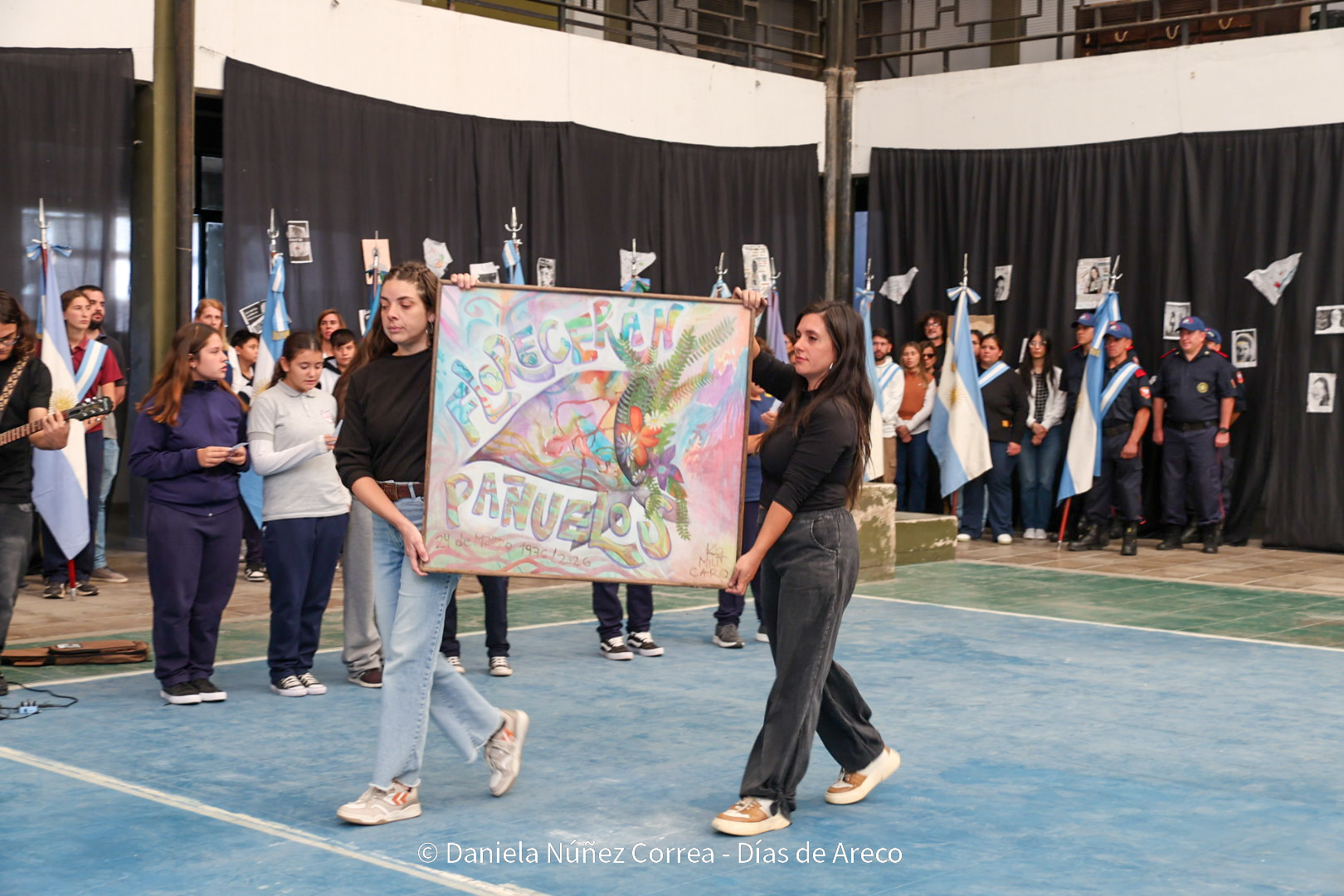 El acto terminó con un mensaje de esperanza y memoria para la defensa de la democracia, con un cuadro bajo la consigna «Florecerán pañuelos» hecho por las barritas KQ Alonso, Mili López Deheza y Caro Oviedo, que quedará en la escuela.