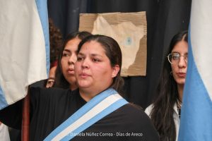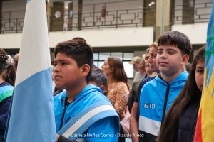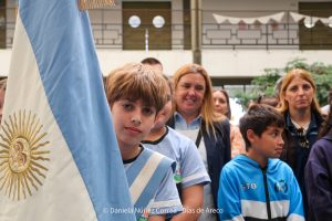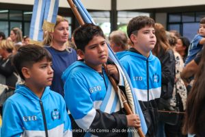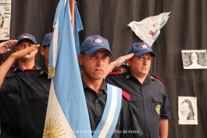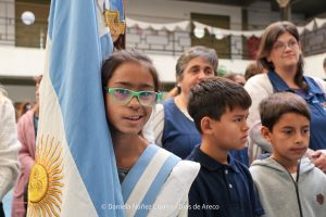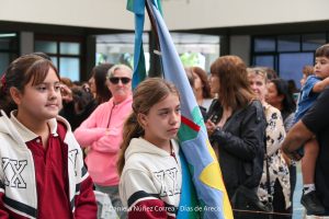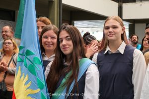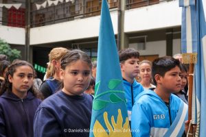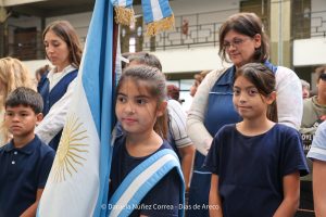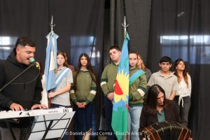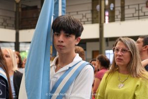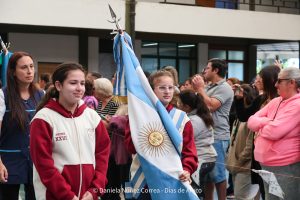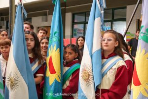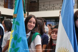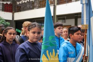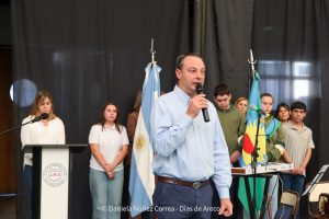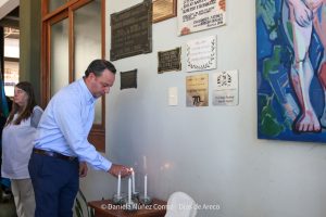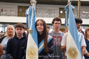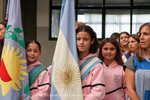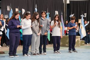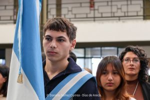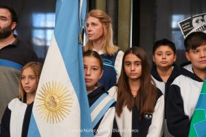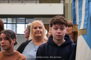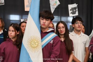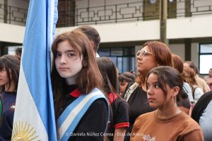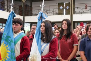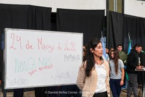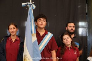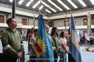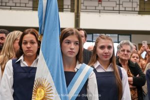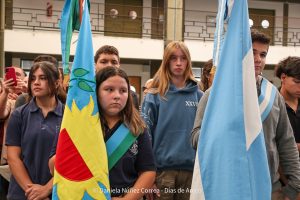 Antes del ingreso de las banderas de ceremonia se encendieron cuatro velas en el ingreso al colegio, recordando a los cuatro estudiantes de la institución víctimas del terrorismo de Estado. Hubo palabras a cargo del Intendente Ratto y de la directora de la escuela, Betiana Milanesi.