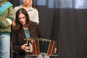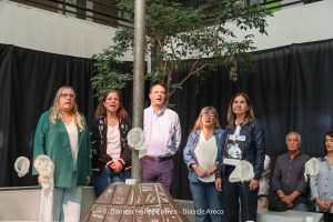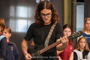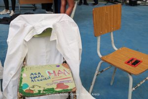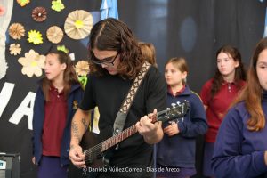 Después, estudiantes, docentes, artistas, periodistas y bailarines hicieron una representación al ritmo primero de «Los Dinosaurios» en voz y piano del profesor Wen Oviedo junto a músicos locales y alumnos de la escuela, para después dar paso a una sentida versión de «La Cigarra» con un coro de estudiantes de todas las edades.