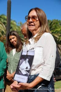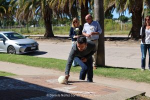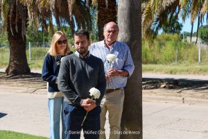 Tras el acto, se dejaron flores en el Espacio de la Memoria en la vereda de la Escuela Técnica, donde están instaladas las baldosas con el pañuelo de Madres y Abuelas de Plaza de Mayo.