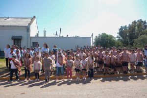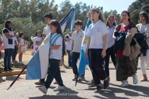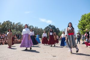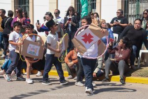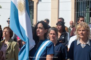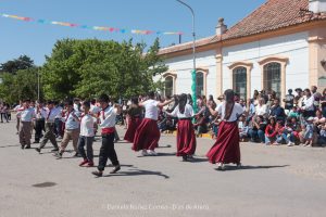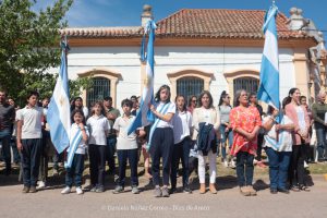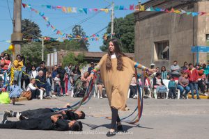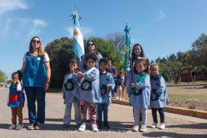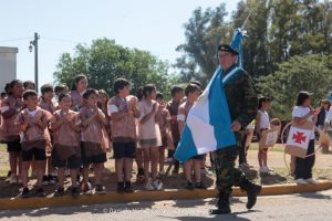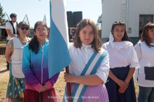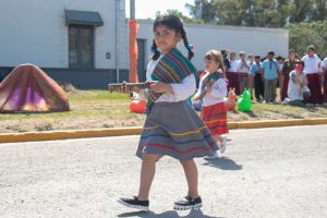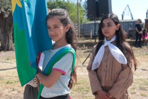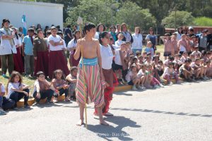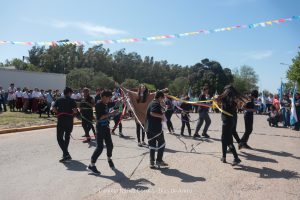 Finalmente, alumnos de la Primaria N° 13 reflejaron la conquista de América y el genocidio de los pueblos originarios al llegar los europeos. El cierre del acto estuvo a cargo de alumnas de esa institución, que con vestimenta gaucha hicieron pasos de malambo acompañadas en el bombo por su docente de danza.