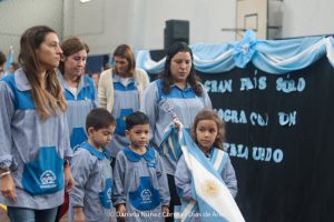 Chicos y chicas de la segunda sección del Jardín Martín Pescador contaron a los presentes lo que aprendieron sobre la revolución de Mayo con el acompañamiento de sus docentes. Además, mostraron dibujos sobre la fecha y, junto a estudiantes de la Secundaria Municipal Manuel Belgrano y su profesor Wenceslao Oviedo, interpretaron la canción “Mayo en Buenos Aires” de Sebastián Monk.