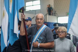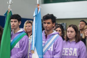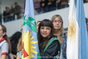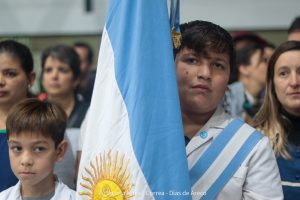 Organizado por el Jardín Municipal Martín Pescador y la Secundaria Manuel Belgrano, esta mañana se desarrolló el acto oficial por un nuevo 25 de mayo. Debido al mal tiempo, el encuentro fue en el Gimnasio Saigós, que se colmó con las banderas de ceremonias de escuelas, jardines, instituciones intermedias y de educación superior, clubes, bomberos, policía y veteranos de Malvinas.