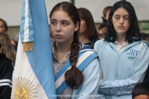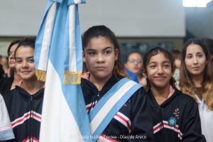 “Hoy, a 213 años de los acontecimientos que nos permiten en la actualidad disfrutar de un país libre y democrático, ¿no será tiempo de plantearnos qué hacemos con la libertad recibida de la mano de los próceres de aquellos tiempos y con la libertad que a medida que crecemos y nos desarrollamos como personas vamos adquiriendo y debemos continuar acrecentando? Hoy, como en 1810 la libertad se nos presenta como un desafío innegable para quienes habitamos esta tierra”, aseguró en su discurso la directora de la Secundaria Manuel Belgrano, Mariana Fagnani.