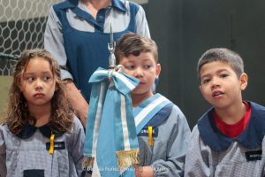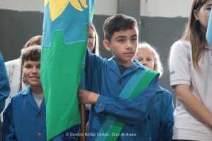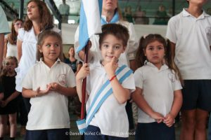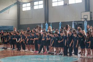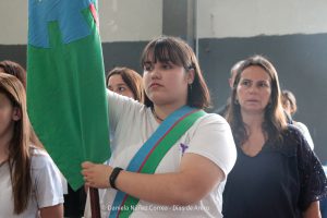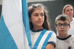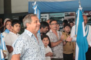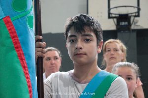 Debido a la amenaza de lluvia, el encuentro fue en el Gimnasio Saigós y participaron con sus banderas instituciones educativas e intermedias de toda nuestra localidad.