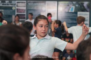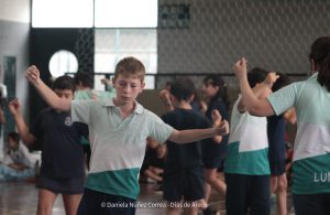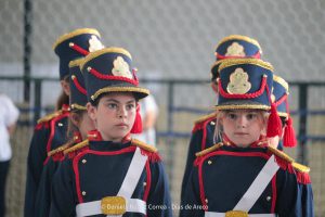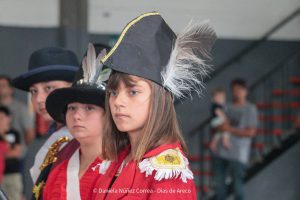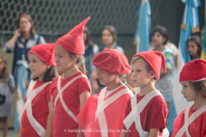 Estudiantes del Colegio Pampedia hicieron una representación de los preparativos de la estrategia usada en la batalla de Vuelta de Obligado y luego alumnos y alumnas de la Primaria N° 1 cantaron y bailaron la Chacarera del Clavel que también refleja ese momento histórico.