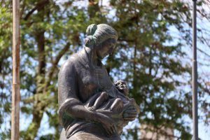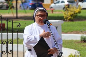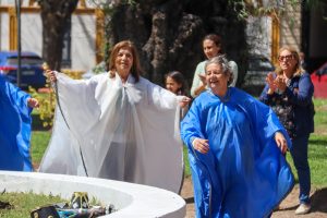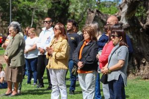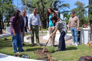 Durante el acto hubo una bendición para las madres y autoridades del Rotary, Interact y el Club Huracán plantaron lavandas alrededor del monumento junto al Intendente Ratto.
