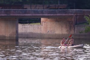 En días de mucha temperatura como hoy, arequeros y turistas disfrutan del río. Hay quienes se animan a las actividades acuáticas, otros se acercan con la reposera y el mate y algunos hasta se animan a pescar.