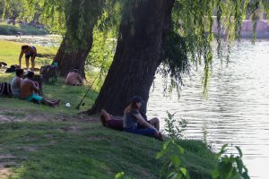 En toda la zona de la Costanera, visitantes y locales aprovechan el verde y el río para hacerle frente al calor. Algunos paran en los bares y restaurantes o en las ferias, y más de uno deja un poco más lejos su vehículo para evitar pagar estacionamiento medido.
