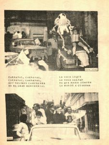 Las fotografías del recordado Abel Rossi que publicó el desaparecido semanario La Gaceta son una pintura cabal de la celebración popular del Areco de finales de la contradictoria década del 70 que estaba llegando a su fin: los marcas de los automóviles clásicos de aquel tiempo (que recordamos en blanco y negro) Citroën, Rastrojero, Ford Falcón, el Peugeot 404, el tractor sin cabina tirando un carro, los gorritos de lana, los carteles de publicidad en la vía pública, los muñecos producto del carnaval artesanal que siempre nos distinguió, el Intendente Enrique Amondaray (vestido con su habitual saco blanco) festejando con la gente, la vieja matiné del Prado Español donde se prolongó la fiesta de los más jóvenes.
