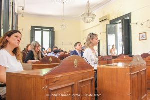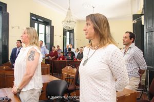 En el Concejo Deliberante, el presidente saliente, Juan Pablo Pavone, dio su discurso de despedida y luego le dio a lugar a Elizabeth Parés para hacer la toma de juramento a los nuevos consejeros.
