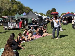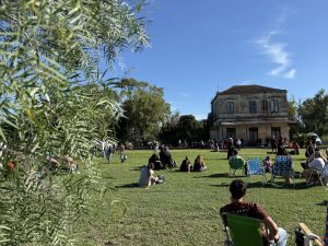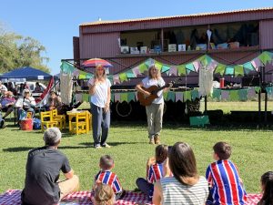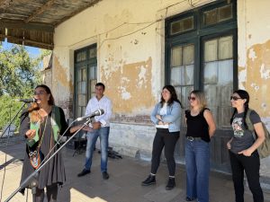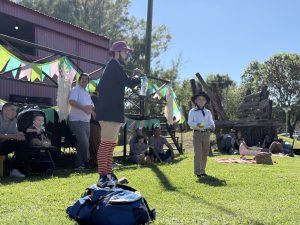 La celebración de los 146 años de historia de Azcuénaga, partido de San Andrés de Giles, tuvo también fuerte presencia arequera. Para inaugurar la biblioteca, hubo presentaciones de Santiago Colatruglio con artes circenses y La Luna Compañía de Cuentos con narraciones. Además, la misma Laura Ramírez también compartió relatos para los más chicos y toda la familia.