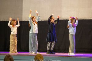 Después hubo espacio para estudiantes de comedia musical, tanto niñas como adolescentes, todas del taller que dicta Celeste Robledo en el estudio Andanzas. Las jóvenes artistas interpretaron varias escenas que crearon a partir de improvisación en clase, todas combinando actuación con danza y canto.