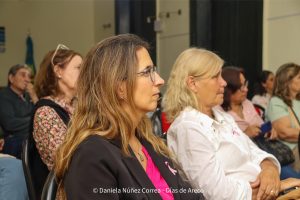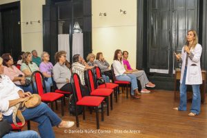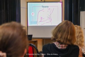 La Dr. Natalia Erramuspe fue la encargada de ofrecer la charla, en la que puso el énfasis en los controles para detectar la enfermedad y en las condiciones que pueden generar mayor predisposición a padecerla. Entre otros puntos, destacó la importancia de la consulta con profesionales ante cualquier duda o temor, de hacer chequeos regulares (mamografías y ecografías mamarias) y del autoexamen de mamas una vez al mes.