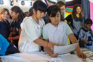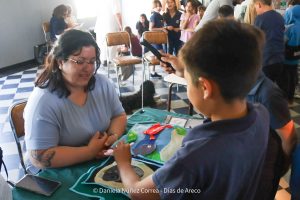 Dentro, estudiantes del profesorado en educación especial del 139 también armaron sus stands con juegos y lecturas inclusivas. También tuvieron sus espacios las escuelas especiales y la UNSADA, que propuso un memotest con plantas y animales nativos y entregó semillas para que los chicos puedan plantar árboles nativos en familia.