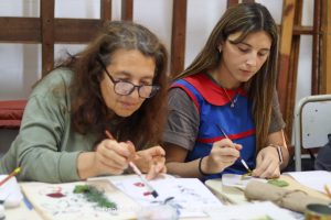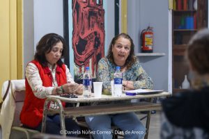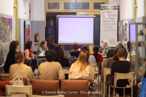 Para cerrar la jornada hubo un conversatorio sobre prácticas artísticas textiles organizado por estudiantes del posgrado Especialización en Prácticas Artísticas Textiles Contemporáneas que la Universidad Nacional de las Artes dicta en San Andrés de Giles. Rosana Pomba de Capitán Sarmiento, María Inés Malvicini de San Andrés de Giles y la docente de la escuela y artesana local Leda Daverio compartieron sus experiencias en encuentros de artesanos y de investigación y producción.
