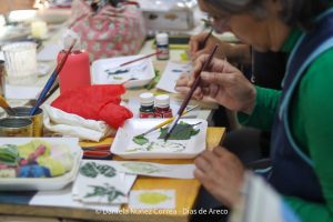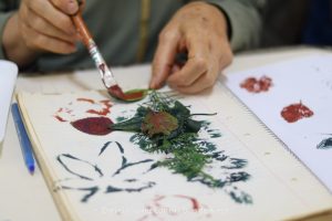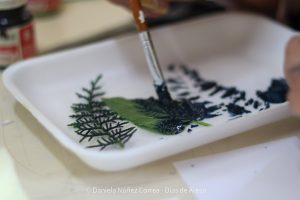 Más tarde, Gabriela Orio dio un taller de sublimación donde los participantes usaron hojas y follaje como elementos base para sus trabajos.