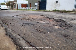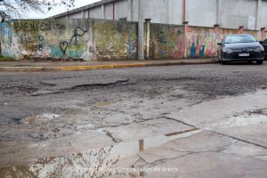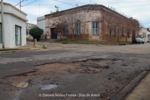 Hay baches muy profundos que complican la circulación y en la esquina detrás del hospital, en la intersección con Matheu, el asfalto se fue carcomiendo y está descalzado para quienes vienen por Matheu.