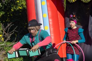 El plato fuerte de la tarde fue el show de circo, que reunió a gran cantidad de familias de Duggan y la zona. El Dúo Hulala hizo una presentación de circo y humor. El espectáculo de los payasos Chispita y Cartón combinó momentos de malabares y acrobacia con interacción constante con el público, que siguió atento la propuesta.