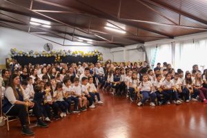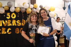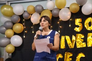Después del ingreso de las banderas de ceremonia y del himno a cargo del profesor Wen Oviedo, la actual directora de la institución, Geraldina Moreira, destacó que “circunstancialmente hoy me toca hacer historia conmemorando el trabajo en corresponsabilidad realizado durante 50 años por muchas personas” y apuntó que “celebramos una historia que sigue construyéndose día a día con estudiantes y familias que nos eligen y nos promocionan participando de cada propuesta”.