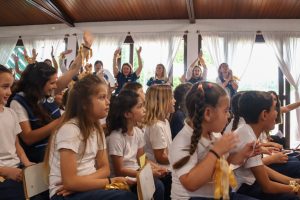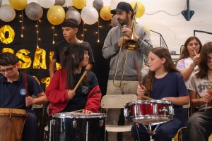 Estudiantes de los distintos niveles que asisten al Centro cantaron junto al profesor Wen Oviedo y docentes y alumnos de la Escuela Municipal de Música una versión muy especial de “Muchachos”. Le cambiaron la letra para destacar el trabajo del CEC y su equipo y los momentos compartidos en la institución.