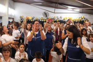 También hubo un repaso de la historia del Centro ilustrado y narrado por estudiantes y al final, el brindis con torta y toda la emoción de estas cinco décadas de educación, inclusión y amor.