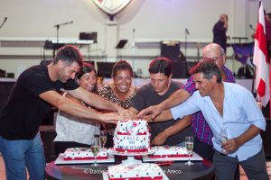 En el tramo musical se presentaron el Grupo Esmeralda y Ahí Vamos ante colmadas pistas de baile y casi al final de la noche se cortó la clásica torta aniversario, especialmente decorada con los colores del club.
