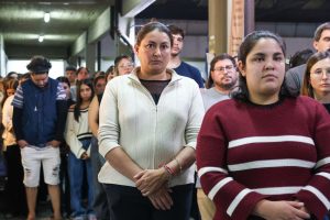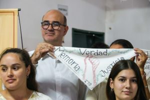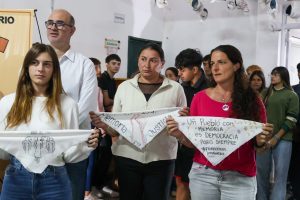 El acto de esta tarde fue organizado por estudiantes de cuarto año de la carrera de psicopedagogía, quienes destacaron que “no es un número menor lo que nos convoca, es la memoria que insiste, que late, que se niega a desparecer”. Y sostuvieron que “hubo silencio pero también hubo voces que resistieron. Porque hubo ausencias pero también amor que no extinguió y en el medio surgieron los pañuelos blancos que no solo nombran el dolor sino que lo transforman en lucha, en presencia, en memoria viva”.