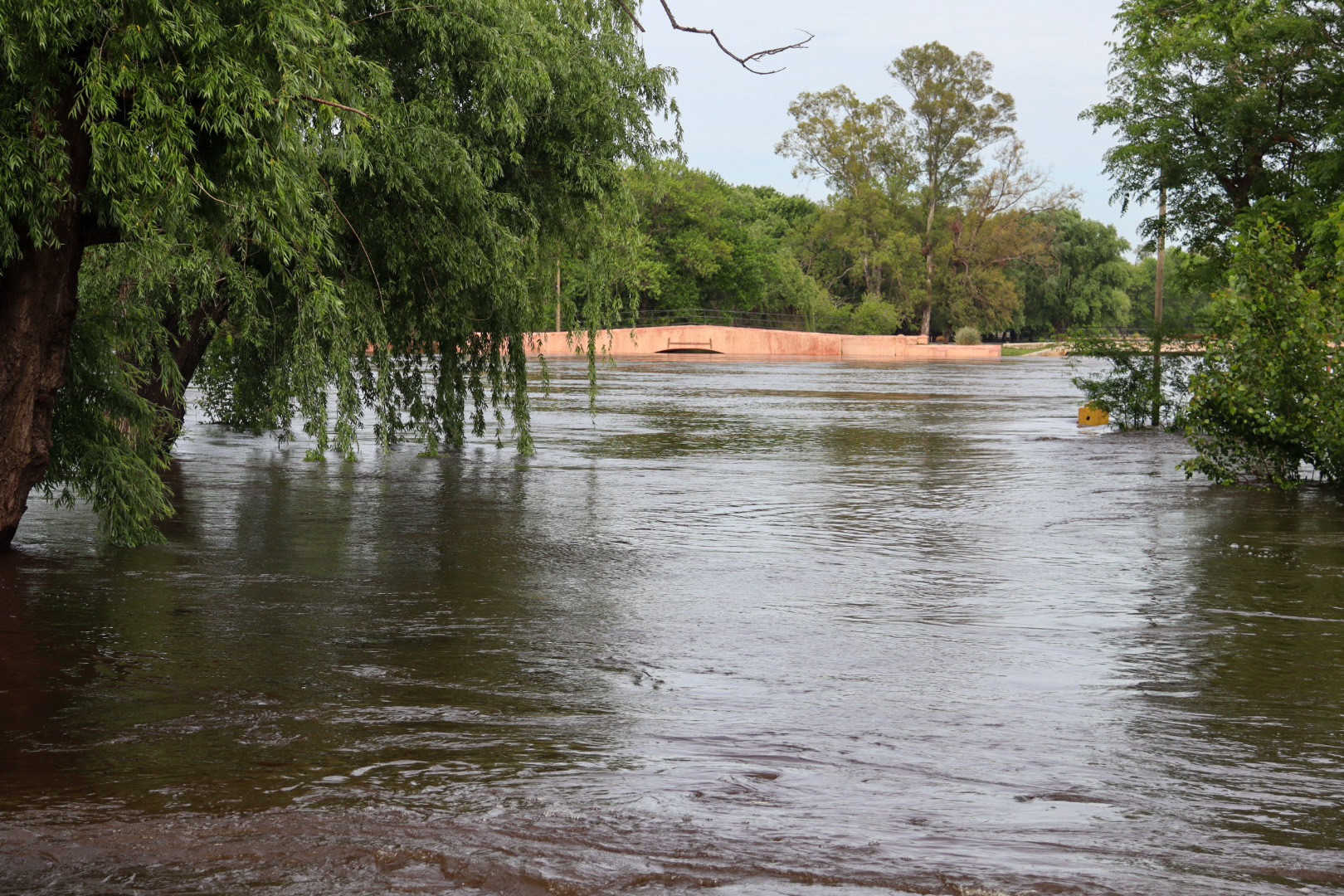 El río continúa bajando y a las 9:30 hs está en 4,41 mts, un descenso de 15 centímetros desde la tarde de ayer. Las calles se van despejando y el Puente Gabino Tapia ya está nuevamente abierto al tránsito, aunque se debe circular por precaución porque todavía tiene agua sobre la calzada.