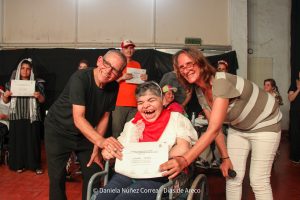 Durante todo el año, 15 personas con discapacidad de distintas edades exploraron el trabajo teatral con el acompañamiento de un equipo de seis facilitadores más la dirección del actor y docente Gerardo Grasl. Como en cada cierre de ciclo, hoy compartieron algo de su arte con amigos y familiares en un emotivo encuentro en el Guerrico.