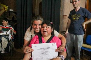 Muchos de los talleristas vienen del Hogar San Camilo de Vagues, que no solo se encarga del transporte para que puedan asistir semana a semana, sino que también tiene a algunas de sus trabajadoras formándose como facilitadoras y acompañando todo el proceso. Desde hace varios años, Gerardo Grasl dirige el taller, que en 2026 va a cumplir 25 años de trabajo por la inclusión y el bienestar de las personas con discapacidad.