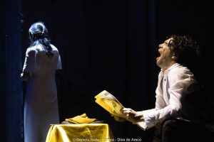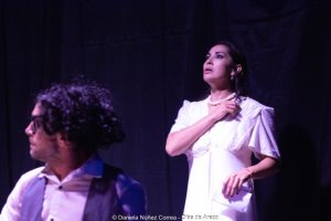 Ocampo es Mariana, una joven dividida entre casarse con un hombre que no ama para mantener el estatus de su familia y seguir a su corazón y escaparse con Alejandro, interpretado por Menconi. Durante la puesta, los enamorados se encuentran y desencuentran e incluso en algunos tramos Menconi interpreta al esposo de Mariana, que en un momento cede ante la presión familiar y efectivamente se casa.