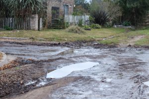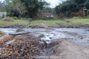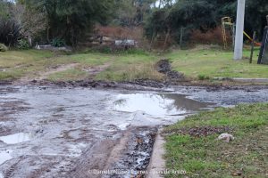 Las quejas de los vecinos de los distintos barrios de nuestra ciudad siguen llegando. Miembros de la comunidad de Días de Areco que viven o transitan regularmente por el Barrio Prado llamaron la atención sobre la esquina de Somonte y Martín Fierro. El cruce se ha convertido en un verdadero barrial que reúne pozos, agua acumulada y barro.