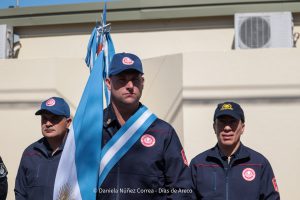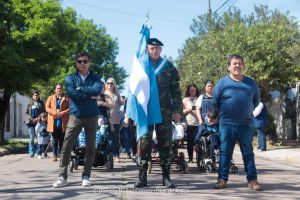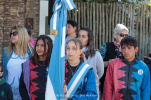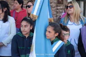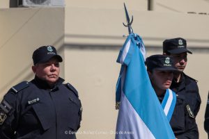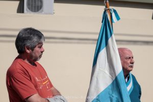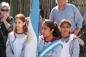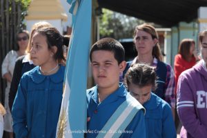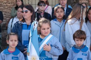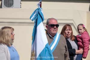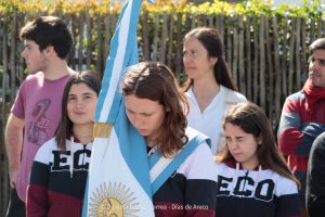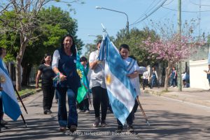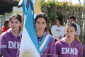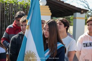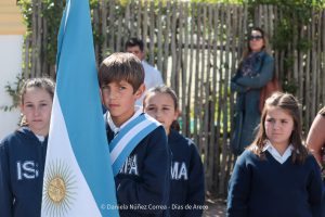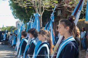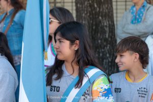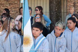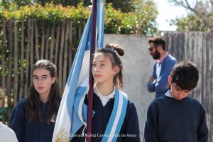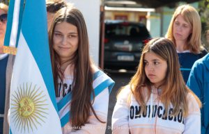 Tras el ingreso de las banderas de ceremonia encabezadas por los Veteranos de Malvinas, se entonaron el Himno Nacional y la Marcha de Malvinas. Más tarde, la directora de la escuela, Mariela Muriel, se dirigió a los presentes.
