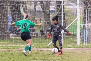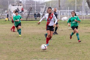 El elenco de la Plaza Belgrano manejó la pelota y jugó siempre en campo rival. Machacó una y otra vez hasta que a los 8 minutos del complemento Virginia Maggio, de destacadísima labor, quebró el 0 a 0 con la efectiva ejecución de un penal y derrumbó el cerrojo defensivo verde.