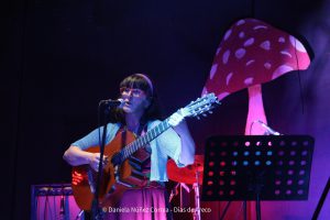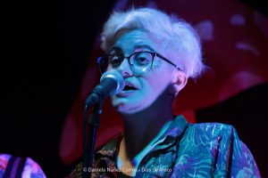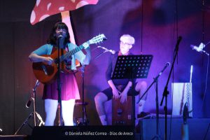 La noche abrió con la presentación de la cantautora Leti Burbuja desde La Plata, acompañada en algunos temas por Nele Falivene en percusión. La artista interpretó composiciones propias, entre ellas varias pertenecientes a su disco «La Mora Mora».