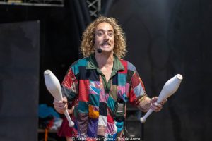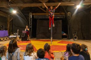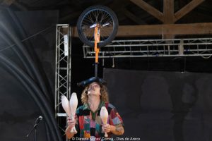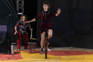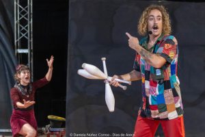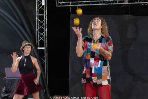La acróbata y música Lucía Villaseco y el payaso Mameluco ofrecieron un show con mucha interacción con el público y que incorporó malabares, música en vivo, acrobacias en monociclo y hasta juego aéreo. El espectáculo fue a la gorra, como parte de la visita de Circo Entero a Areco en el marco de una gira que están realizando por distintos puntos de la provincia.
