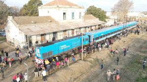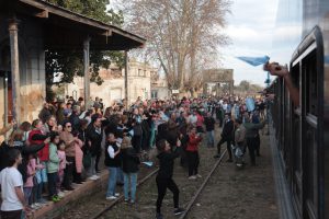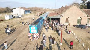 La caravana fue acompañada por gran cantidad de vecinos que, emocionados, saludaron el paso del tren tras tantas décadas de esperar su retorno y algunos pudieron incluso viajar desde Vagues hasta Areco en la formación.