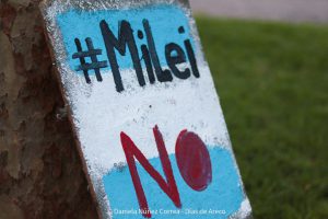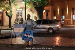 Anoche, vecinos autoconvocados se manifestaron en Plaza Arellano para expresar su rechazo a Javier Milei. En la esquina de Mitre y Arellano, hubo carteles y micrófono abierto para decirle no al candidato libertario de cara al balotaje que se disputará este domingo 19.