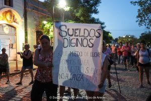 Anoche, un importante número de vecinos se manifestó en Plaza Arellano en apoyo al reclamo de mejoras salariales de los municipales. Desde las 19 hs, el punto de encuentro fue la esquina de Lavalle y Alsina, donde se dieron cita gran cantidad de trabajadores de diversas áreas del Municipio, sus familias y vecinos en general.