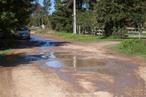 El mal estado de las calles es total y afecta a todos los barrios del pueblo. La calle Los Horneros es una de las más afectadas, con pozos que hacen casi imposible la circulación porque se extienden por todo el ancho de la calzada y tienen una profundidad inusitada.
