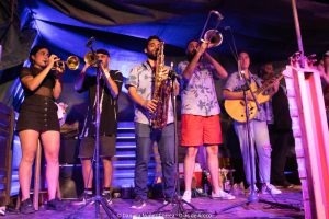 Del show participaron también destacados artistas locales como Vane Gómez de Piel Canela, que subió a ponerle voz a varios temas más salseros. Jony Sotto de Malibu inclinó la balanza a una cumbia con aires futboleros con una muy coreada versión de “La Cumbia de los Trapos”, y Manu Monserrat y Rochi Gasparini de Chaco Boreal se sumaron a los vientos en el tramo final de la presentación.