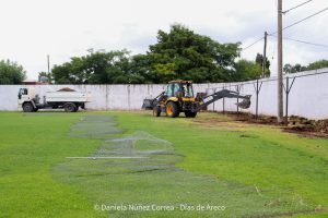 Además, ya se instaló un nuevo portón de ingreso al campo de juego por calle Fitte y se está trabajando en un sistema de desagües para facilitar la salida del agua de la cancha.