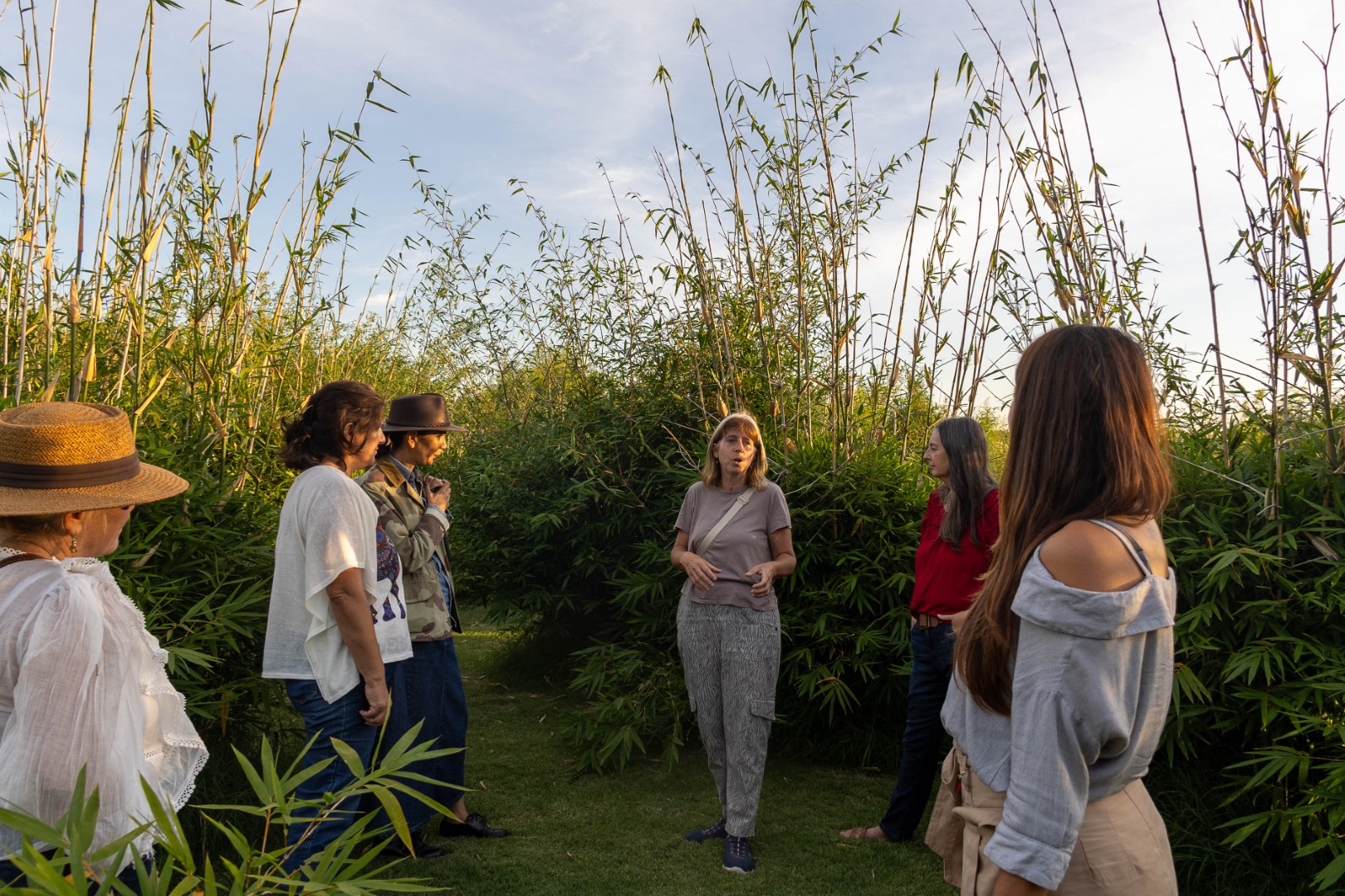 May Borovinsky, la artista y gestora cultural que encabeza el equipo de Laberinto Pampa acompañó a los visitantes y les contó detalles no solo de la composición del laberinto, formado por distintas especies de bambú, sino también de las actividades que se ofrecen en el lugar.