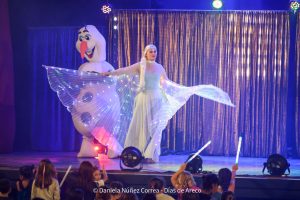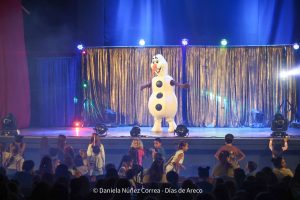El plato fuerte fueron las Guerreras KPop y los Saja Boys, que trajeron sus canciones y su destreza y fueron los más buscados por los chicos, muchos caracterizados también como los personajes. Después fueron pasando distintos números musicales inspirados en animales de la granja, Bluey, Spiderman, los Minions y Frozen, entre otros.