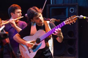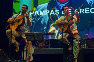 La noche abrió temprano con la presentación de Los Pampas de Areco. Charly Zaldívar y Walter Ratto fueron abriendo la pista frente al gran escenario ubicado de espaldas a la calle Moreno con algunos clásicos del folclore sureros a dos guitarras y dos voces.